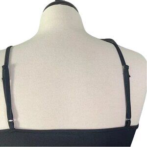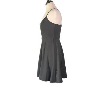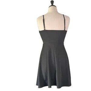 Chic black mini dress with adjustable spaghetti straps. Simple and stylish design.