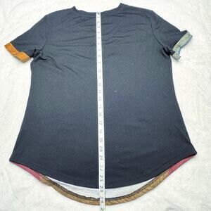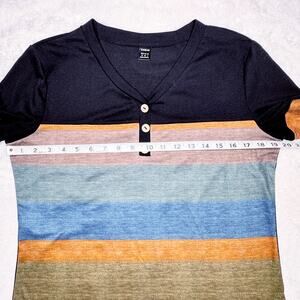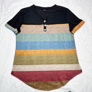 SHEIN Black Short-Sleeved Top with Multi Colored Stripes Size 6 Medium