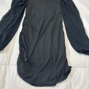 SHEIN Black Square Neck Bodycon Mini Dress Size Small Long Sheer Puff Sleeve