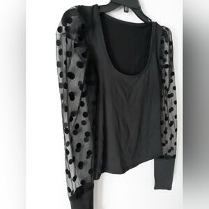 SHEIN Black Top with Sheer Polka Dot Sleeves PTP 16”