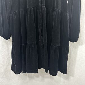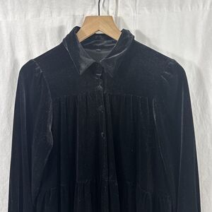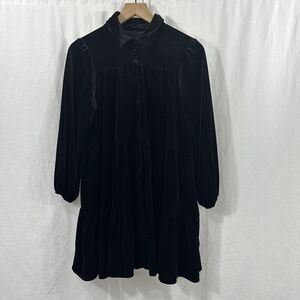 SHEIN Black Velvet Button Front Tiered Babydoll Dress Dark Romantic Size M