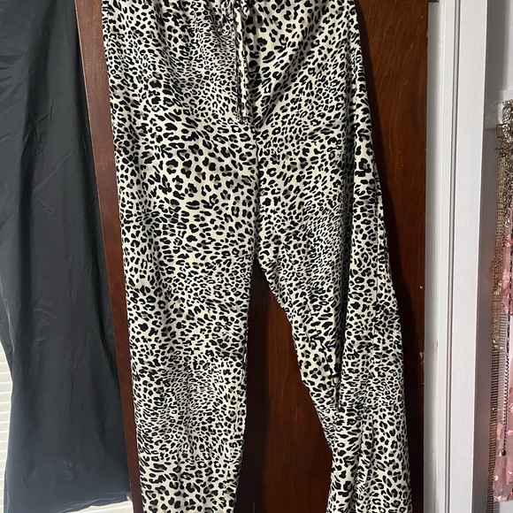 SHEIN Black and Cream Track Pants with Leopard Print