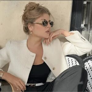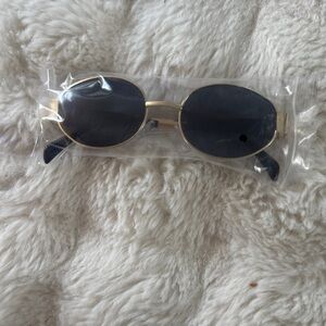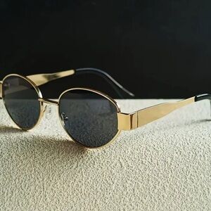 Chic sunglasses with a black frame and gold accents. Perfect for a stylish look.