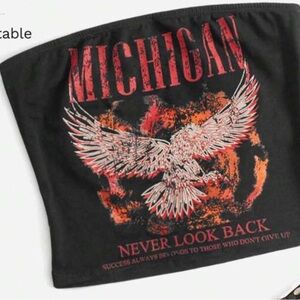 Stylish tube top with bold graphic. Features 'Michigan' text and eagle design. Perfect for casual wear.