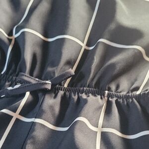Stylish black one piece with white grid pattern. Comfortable fit. Perfect for any occasion.