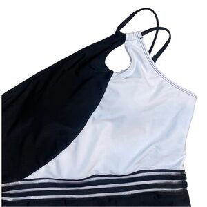 SHEIN Black and White One Shoulder Mesh Panel One Piece Swimsuit