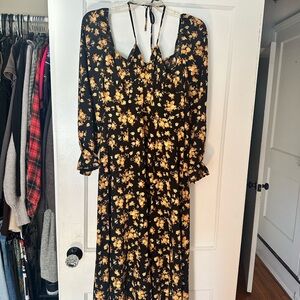 SHEIN Black and Yellow Floral Long Sleeve Dress