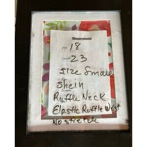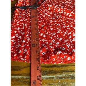 SHEIN Blouse Size Small Red Floral Ruffle Neck & Wrist Tie Neck Silky Top Dressy