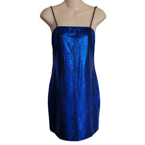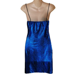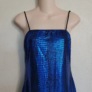 SHEIN Blue Crocodile Embossed Bodycon Cami Spaghetti Strap Dress Size Women's L