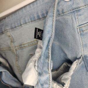 These SHEIN jeans feature a striking blue hue and a trendy flare and wide leg design, perfect for making a fashion statement. Crafted from medium-weight denim, they offer a comfortable fit and a stylish silhouette. Ideal for casual outings, these jeans combine classic charm with a modern twist.