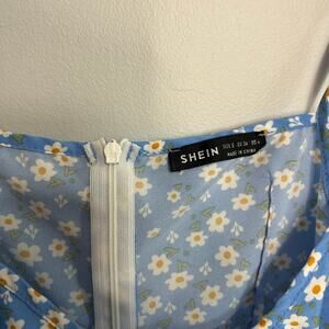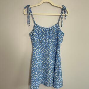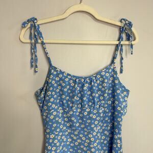 SHEIN Blue Floral Spaghetti Strap Tie Sleeve Mini Sun Dress Size Small