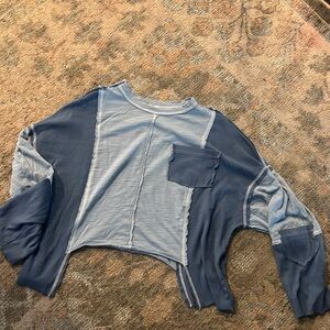 Stylish patchwork design. Crew neck with pocket detail. Perfect for casual wear.