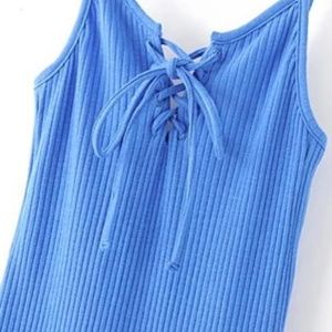 SHEIN // Blue Ribbed Spaghetti Strap Dress