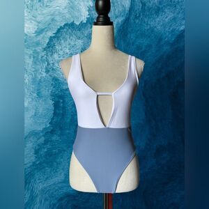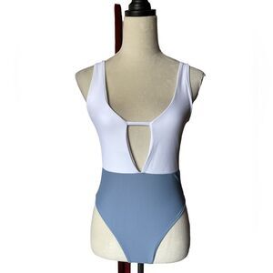SHEIN Blue & White Color Block One Piece Bathing Suit (Medium)