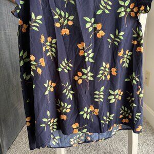 Blue sleveless top with little ruffles on shoulders SHEIN Curve