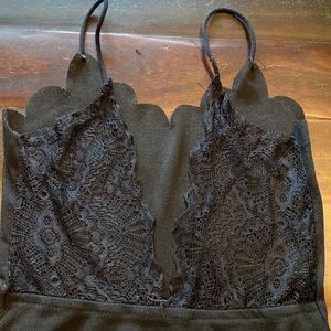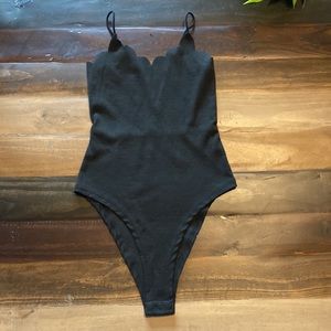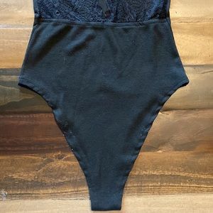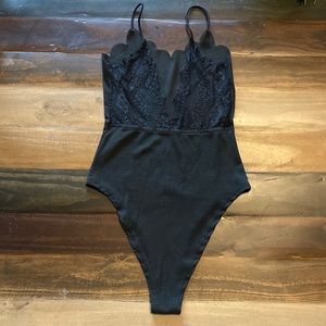 Shein Bodysuit With Lace V-cut Back Scallop Neckline Black