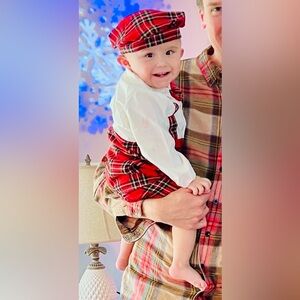 SHEIN Boys Plaid “Overalls” w/Beret, Size 12-18M