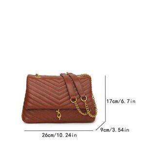 Stylish brown shoulder bag with chevron pattern. Features a chic chain strap. Item is new . Package doesn’t come with a tag . Item is brand new.