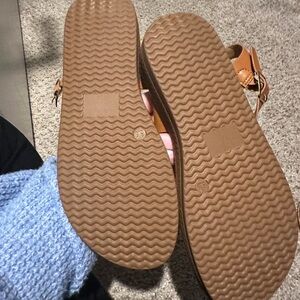 Chic brown sandals with strappy design. Features a comfortable wedge sole. Ideal for everyday wear.