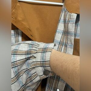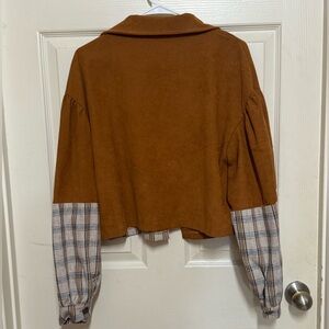 SHEIN Brown & plaid Short Jacket with bubble sleeves-thin quarter Roy/faux suede