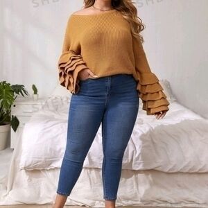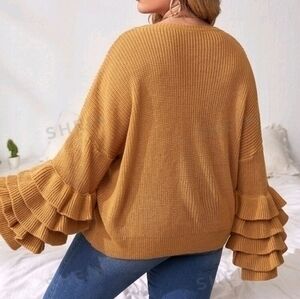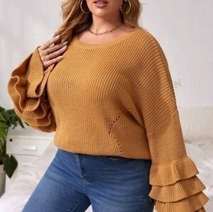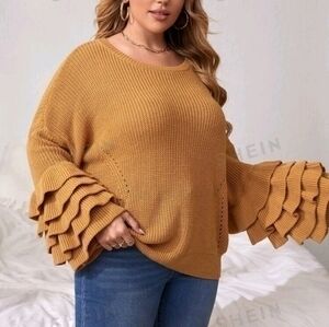 SHEIN CARAMEL RUFFLE SLEEVE SWEATER SZ 3X