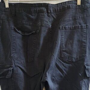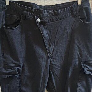 SHEIN CURVE BLACK CRISS-CROSS-ZIPPER-FLY RUCHED STRETCH CARGO DENIM