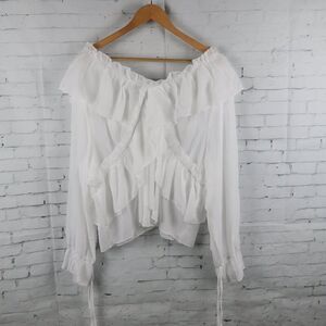 WHITE OFF THE SHOULDER TOP WITH RUFFLE DETAIL SIZE 4XL BY SHEIN CURVE PRE OWNED NO FLAWS