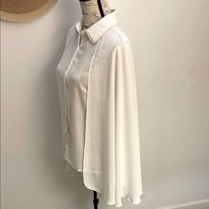 SHEIN | Cape White Long Sleeve Button Down Shirt Vintage Look Size M