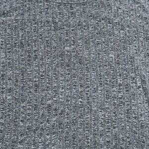 Chic charcoal ribbed crop top. Long sleeves for a sleek look. Perfect for casual outings.