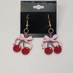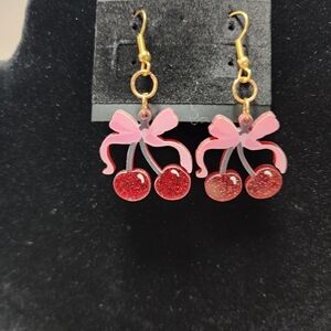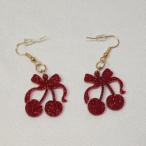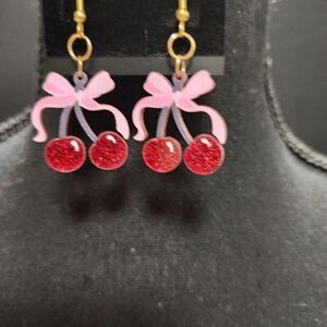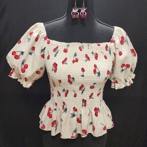 Shein off-white top with a cherry mottif. Chic off-shoulder top featuring a playful cherry print. Perfect for adding a pop of color to your wardrobe. Cherry earrings that I put together to match this top. Size small