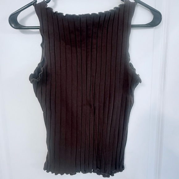 SHEIN Chocolate Ruffled Ribbed Cropped Tank Top