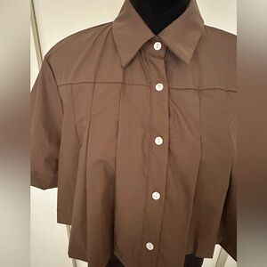SHEIN Collared Pleated Crop Button Down Top - Size L - NWOT