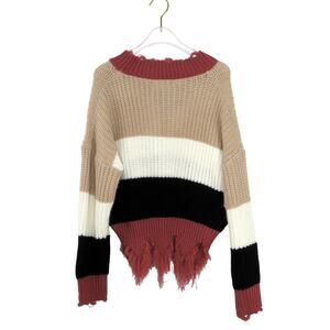 SHEIN Colorblock Sweater Pink Black Tan V-Neck Striped Sweater Small