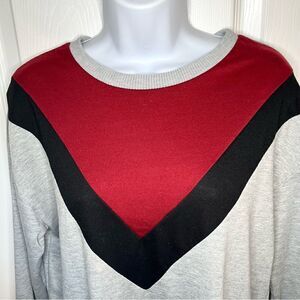 SHEIN Colorblock Sweatshirt Maxi Dress Long Sleeves Grey Size Large. Contrast Chevron burgundy black Panel Marled Sweatshirt. Long length. Long sleeves. Maxi dress. Comfy casual relaxed fit. Long sweatshirt. Crew Neck. Colorblock contrast. Soft stretchy fabric. Gently used Excellent Preowned Condition. No brand tag.
