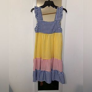 SHEIN Colorblock Gingham Midi Ruffle Tiered Dress M SO CUTE!