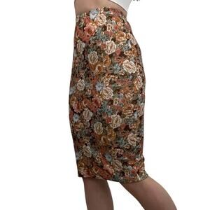 Beautiful orange and pink colorful floral print bodycon midi skirt