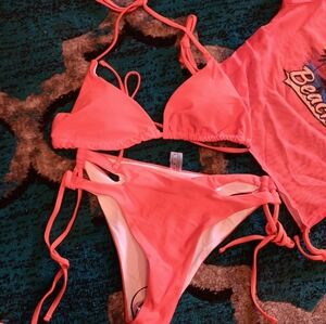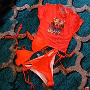 SHEIN Coral Bikini Set with Graphic Tee New Size S 3 Piece
