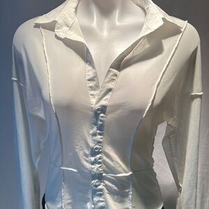 Stylish cream blouse with button-up front. Ideal for a sophisticated look.
