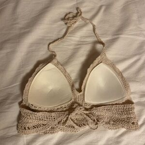 Cream crochet shein bikini top, size small. has built in padding and there are no flaws. inbox me with any questions or offers!