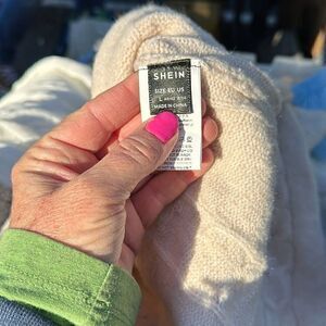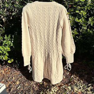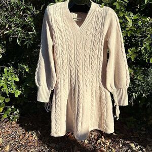 SHEIN Cream Knit Long Sleeve Sweater V neckline Soft Dress Size L