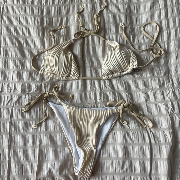 Stylish cream bikini with ribbed texture. Ideal for beach outings.