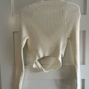 Elegant cream ribbed knit top. Ideal for a sophisticated style. Can wear the cutout side on the front or back.