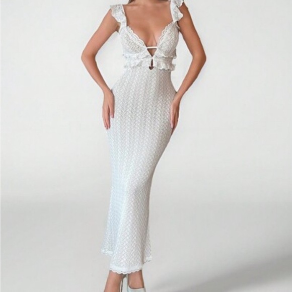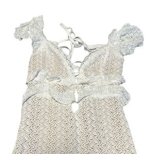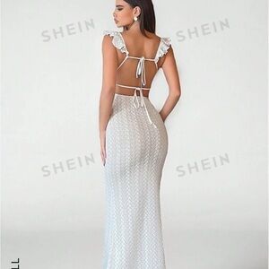 SHEIN White Sexy Hollow Crocheted Textured Ruffled Small Flying Sleeves With Hollow Straps SIZE XS