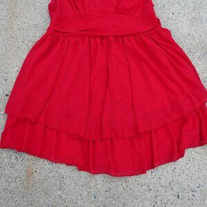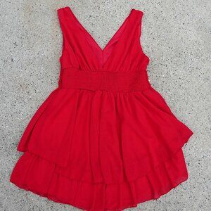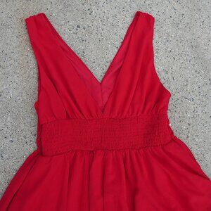 SHEIN Curve 0XL Flowy Red Chiffon Tiered Mini Dress V-Neck Sleeveless