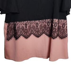 Mauve pink and black colorblock top with black lace overlay on front bottom