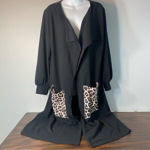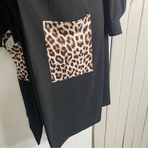 SHEIN Curve Black Long Sleeve Tunic Long Blouse Lined Animal Print 1XL