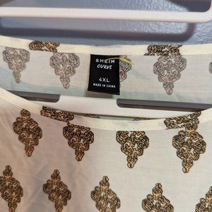 SHEIN Curve Blouse. Size 4XL. See Pictures for measurements. Colors - Cream, Gold, Turquoise. 100% Viscose.