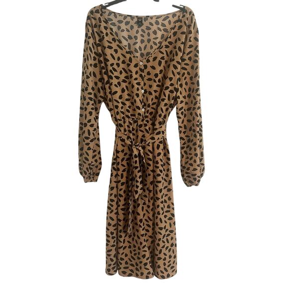 SHEIN Curve Brown Tie Front Sundress with Bishop Sleeves