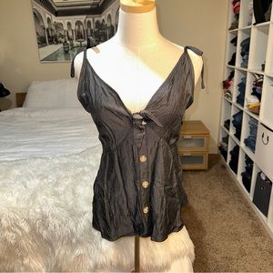 SHEIN | Curve Faux Button Tie Front Straps V Neck Peplum Metallic Tank Blouse