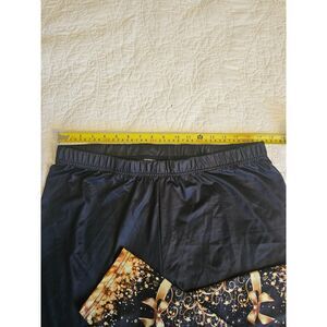 Measurements: 39in length. 17.5in stretchy waist. 5.5in ankle width. Celebrate the season in style with these SHEIN Curve black leggings featuring a dazzling gold Christmas tree design on each leg. Perfect for holiday parties, cozy nights in, or festive errands, these stretchy leggings offer comfort with a touch of sparkle.
